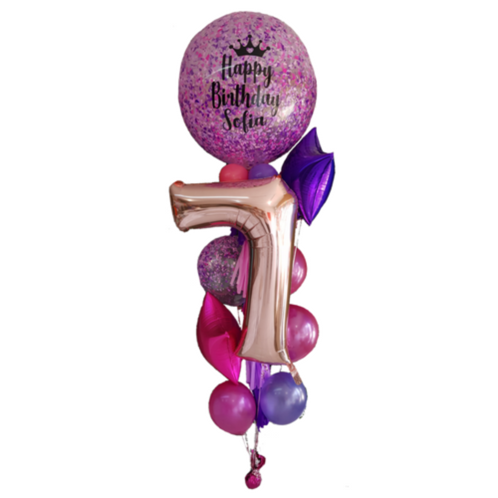 Bouquete de Globos metálicos inflado con aire y una varilla para sujetarlo, ideal para regalar en los cumpleaños, fechas especiales. Mide 1 m de alto 50 cms de ancho.