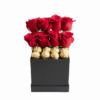 Caja cuadrado con 3 Rosas Rojas y Ferrero Rocher mas Globo Mamá