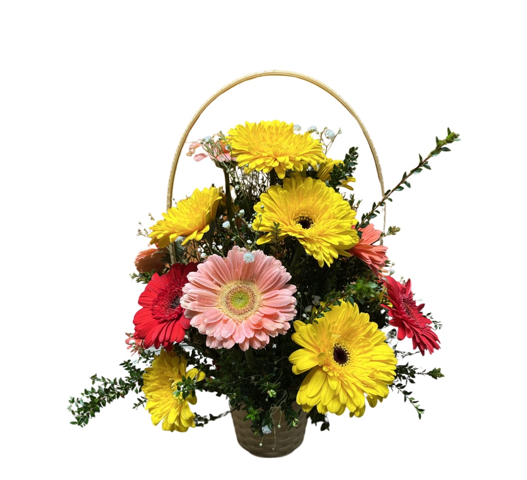 Canasto con 20 Gerberas surtidas