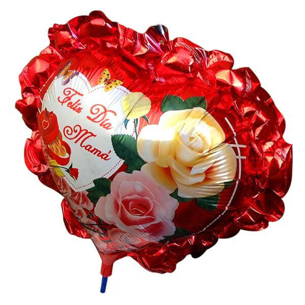 - Globo metálico tiene un hermoso diseño en forma de corazón, de “Feliz día Mamá”, ideal para regalar a Mamá. No lo dudes, sorprendela! Este producto es unicamente para acompañar los arreglos florales
